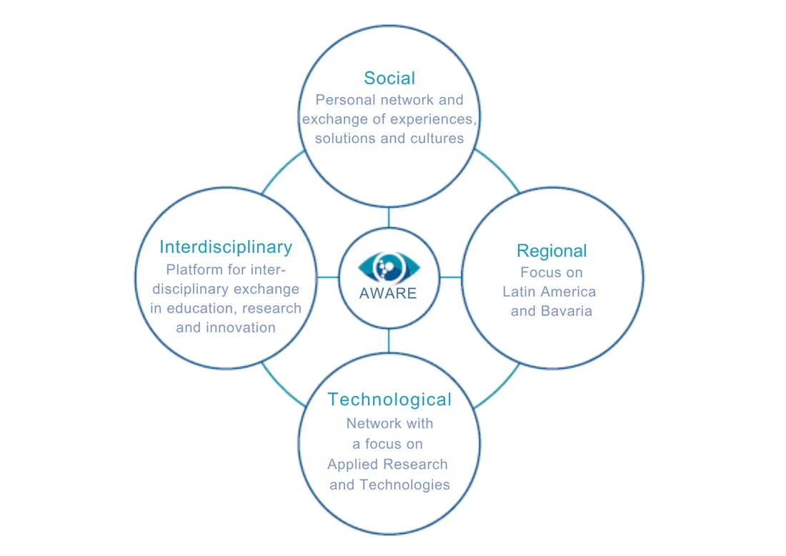 Internationale Forschungsnetzwerke und interdisziplinäre Zusammenarbeit sind für die Entwicklung der Schlüsseltechnologien von morgen unverzichtbar geworden. Seit 2010 hat die Technische Hochschule Ingolstadt (THI) ein starkes strategisches Netzwerk (Applied NetWork on Automotive Research and Education) mit den Bundesuniversitäten Santa Catarina und Paraná sowie weiteren Industrie- und Forschungspartnern aufgebaut. Dies bildete die Grundlage für das AWARE Center als “Bavarian Center for Applied Research and Technology with Latin America”, das 2020 eröffnet wurde. Wir sind ein stark anwendungs- und technologieorientiertes Center und stellen unsere Dienstleistungen einer Gemeinschaft von akademischen und industriellen Partnern in Bayern und Lateinamerika zur Verfügung.